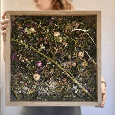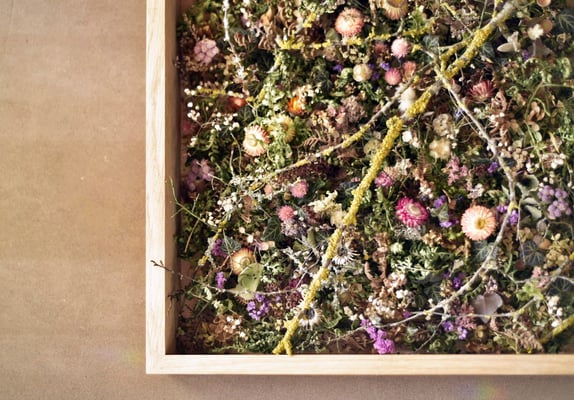 Mooswände waren gestern. Hier ist unser wildfloristisches Pendant dazu. Ganz ohne künstliche Farbstoffe, Stabilisierungsmittel, Klebstoffe und jeglichen synthetischen Hilfsmitteln.